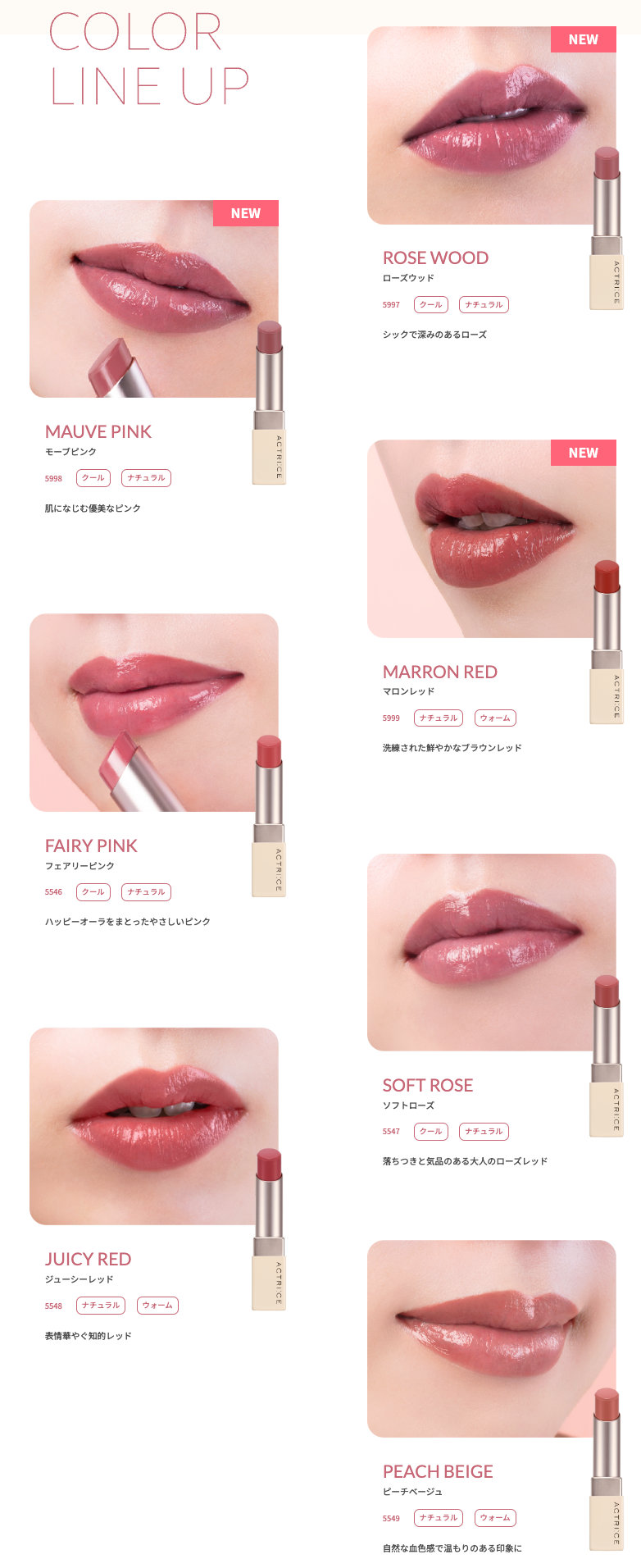 5997:ROSE WOOD, 5998:MAUVE PINK, 5999:MARRON RED, 5546:FAIRY PINK, 5547:SOFT ROSE, 5548:JUICY RED, 5549:PEACH BEIGE